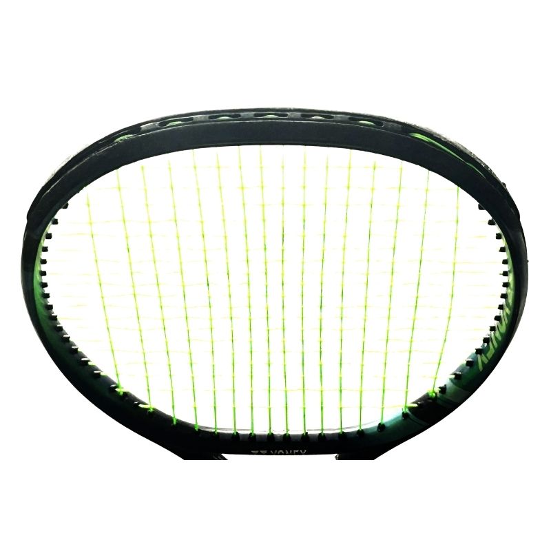 The 16×19 string pattern allows the ball to grip the strings effectively, supporting spin-focused baseline play.