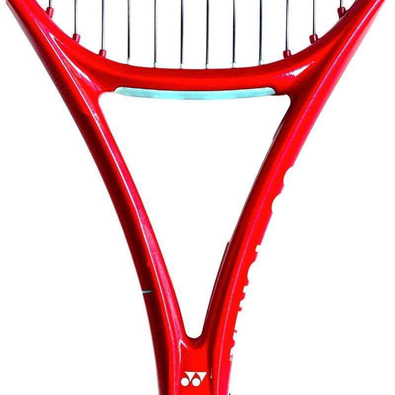 The Yonex VCORE 98 305g features an aerodynamic frame shape that cuts through the air for faster racquet head speed. Despite the 305g weight, this aero shape tennis racket swings quickly through the hitting zone, generating spin and power efficiently. The yonex aero racket design helps you accelerate through your swings, giving you an edge on every shot from serve to volley.