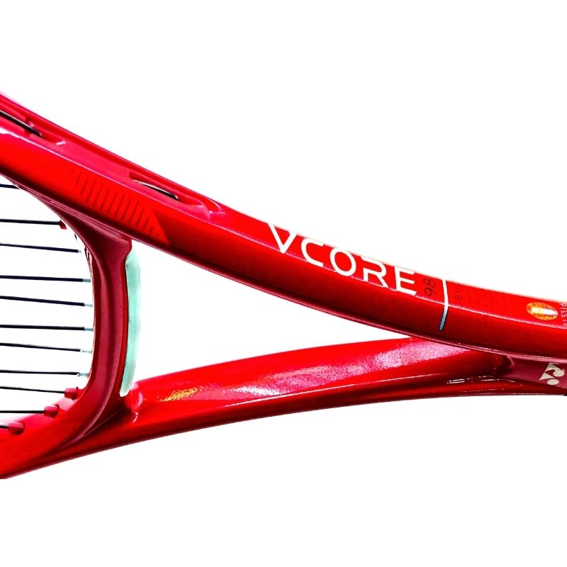 The Yonex VCORE 98 305g features an aerodynamic frame shape that cuts through the air for faster racquet head speed. Despite the 305g weight, this aero shape tennis racket swings quickly through the hitting zone, generating spin and power efficiently. The yonex aero racket design helps you accelerate through your swings, giving you an edge on every shot from serve to volley.